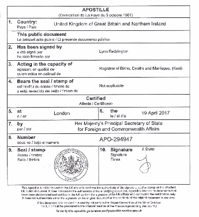 Cei care doresc Apostilarea si Traducerea autorizata a Certificatelor de Nastere, Casatorie, Deces si a altor documente legalizate in UK, pot solicita aceste doua servicii care se realizeaza prin intermediul nostru. Durata de procesare a documentelor este aproximativ de 3-4 zile lucratoare, in unele cazuri cu o durata maxima de 7 zile lucratoare.